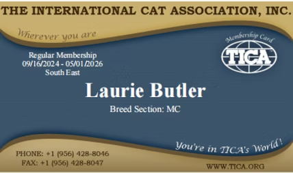 “I’m so grateful I got my beautiful Maine Coon, Luna, from Laurie! She was well-trained, socialized, and I had the chance to visit her a few times before bringing her home. Laurie does an amazing job with her Maine Coons–I give her the highest praise and am already looking forward to getting more from her in the future!”